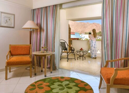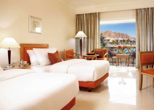 يقع هذا المنتجع بين جبال سيناء وخليج العقبة ويضم شاطئ خاص بطول 400 متر و3 مسابح وسبا. ويوفر العديد من خيارات الطعام. كما يوفر منتجع موڤنبيك طابا لضيوفه سهولة الوصول إلى حدود إيلات/ مصر حيث يمكن عبورها بدون دفع ضرائب حدودية. تتميز جميع الغرف المصممة بذوق بشرفات وتطل على الجبال أو البحر أو على منطقة المسبح. وتشمل المرافق المتوفرة في غرف منتجع موڤنبيك طابا تكييف الهواء وتلفزيون مع 34 قناة كابل وميني بار. يقدم ميديتيرينيان سيشيل المأكولات البحرية الطازجة من البحر الأحمر والمأكولات الشرقية. وتتوفر المشروبات والوجبات الخفيفة في بارات الشاطئ والمسبح في المنتجع وكذلك في الصالة. يقع هذا المنتجع على خليج طابا الذي يطل على خليج العقبة مباشرة وهو نقطة التقاء 4 بلدان مع إطلالات على الأردن وإسرائيل / الأراضي الفلسطينية والمملكة العربية السعودية، كما يبعد المنتجع 38 كم عن مطار طابا الدولي وعلى بعد 8 كم من مطار إيلات الدولي وعلى بعد 69.5 كم من مطار عوفدا في إسرائيل.